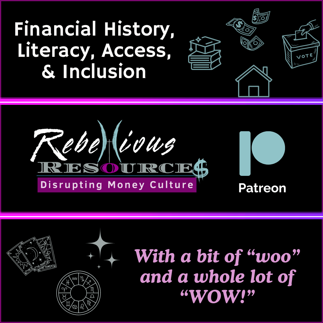 Join our Patreon community for financial history and resistance stories that inform and inspire, along with astrological and tarot support for the month. There are three paid tiers and a free level with limited posts - something is accessible for everyone!