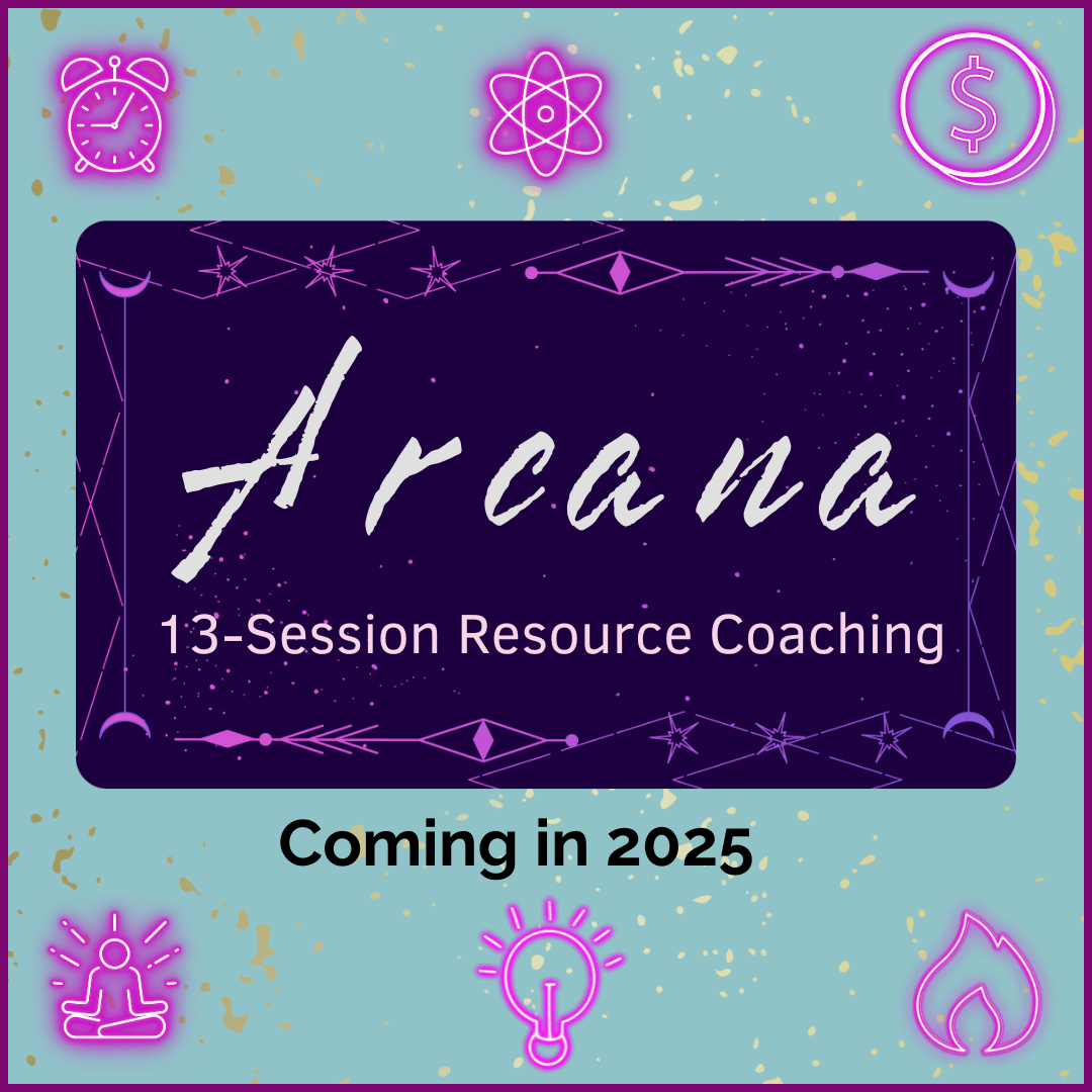 COMING IN 2025: Arcana Coaching is a 13-session program designed to explore your relationship to your resources. We'll uncover the hidden opportunities and challenges you have to embracing your full potential.